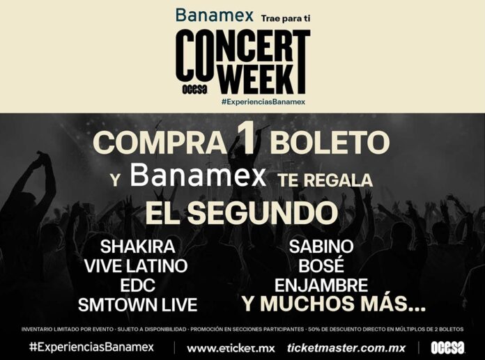Los días más esperados por todos los amantes de la música están por llegar de la mano de Banamex trae para ti: OCESA CONCERT WEEK, en donde por cinco días podrás disfrutar de una de las mejores promociones del año. ¡La fiesta musical comienza!